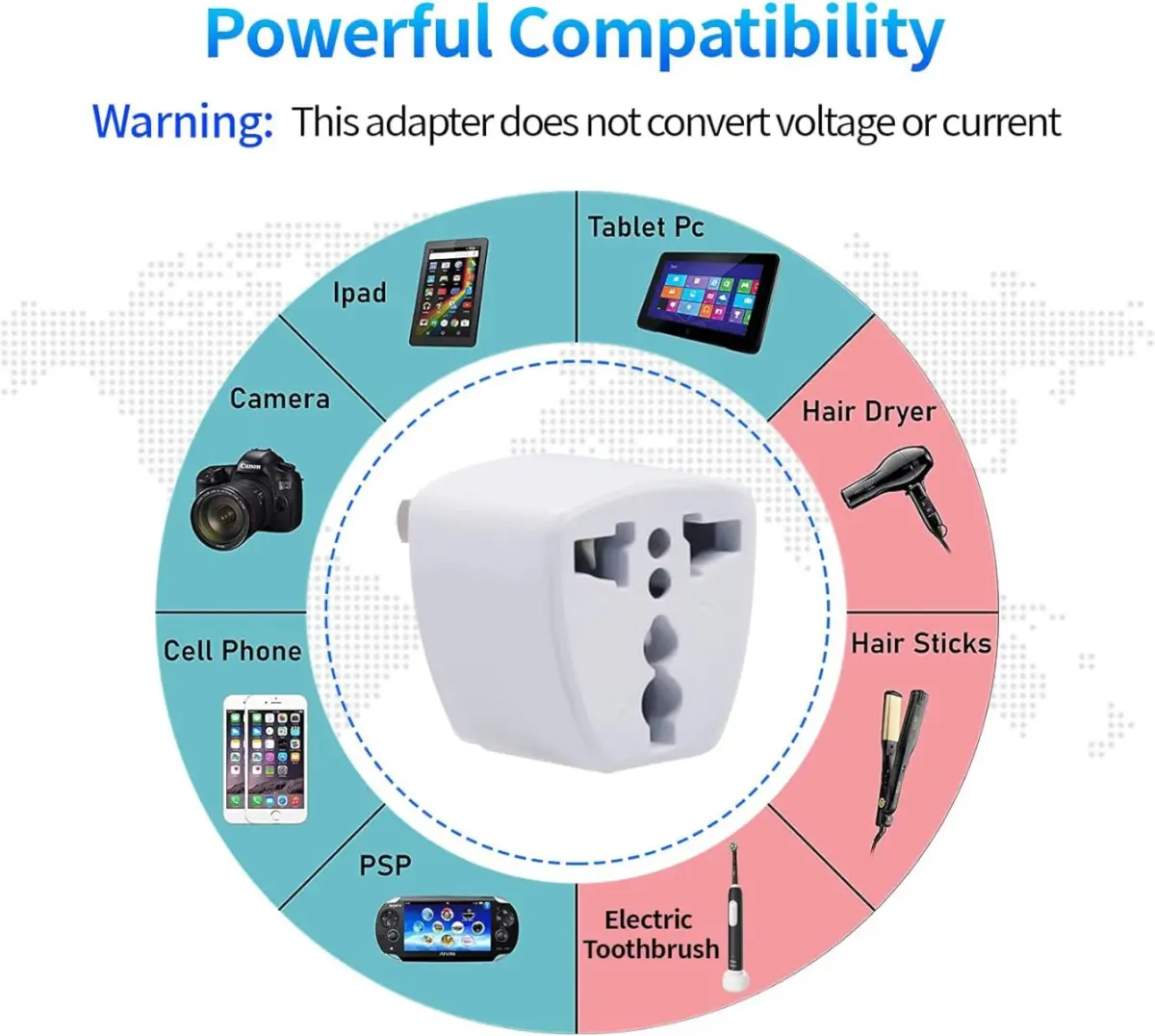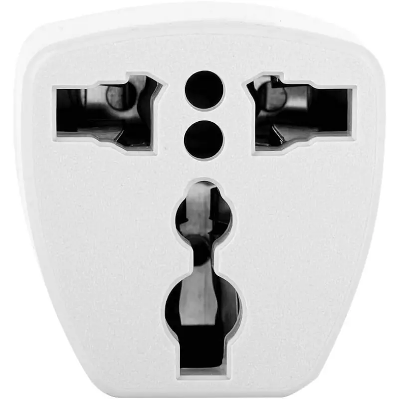 Adaptador de enchufe viajero con conversor Americano y Europeo. Patas angulares de uso Argentino, con 6 entradas para dispositivos diferentes. Fácil de llevar a todas partes.