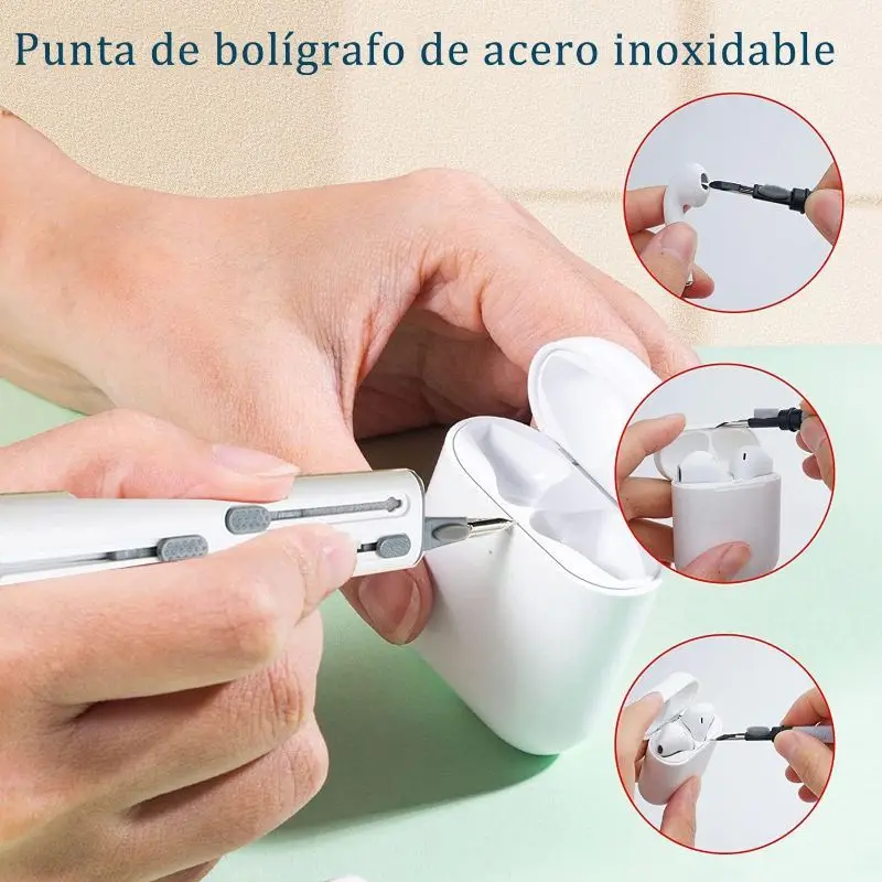 La punta de metal del bolígrafo de limpieza le permite limpiar las piezas pequeñas y los agujeros en los auriculares.