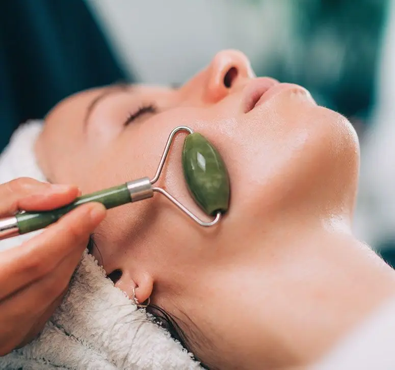 - Terapia física: el masaje con rodillo de jade no solo ayuda a mejorar el color de la piel brillante, reducir los poros y tensar la piel, sino que también ayuda a reducir las líneas finas, arrugas, hinchazón, hinchazón